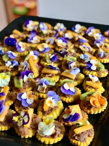 Recette des sablés apéritif au parmesan et au thym accompagné d’échalotes confites, de pomme et de kakis.
